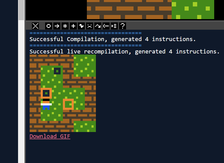 From the editor, load a level, bop around in it a bit, and then press ⌘/Ctrl+k, then BE PATIENT!. Sooner or later BAM a shiny animated GIF along with a download link should appear in the console, like this: